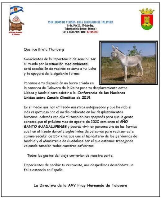 事情是這樣的,最近一段時(shí)間,西班牙首都馬德里正在召開聯(lián)合國(guó)氣候變化大會(huì),該協(xié)會(huì)在社交平臺(tái)上公開表示,要向與會(huì)人員之一的格蕾塔贊助一頭驢,以作為她從里斯本前往馬德里參加聯(lián)合國(guó)氣候變化大會(huì)最環(huán)保的交通工具。
